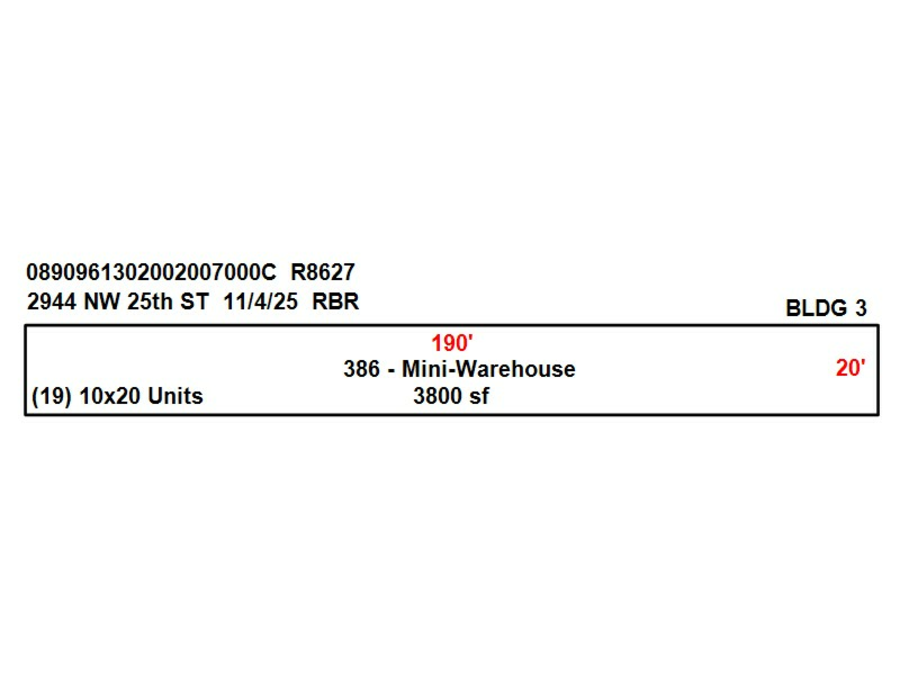 | 1 | Mini-Warehouse | FR+ | 2025 | 01 / 01 | 3,800 | 9 | AV | AV | N/A |